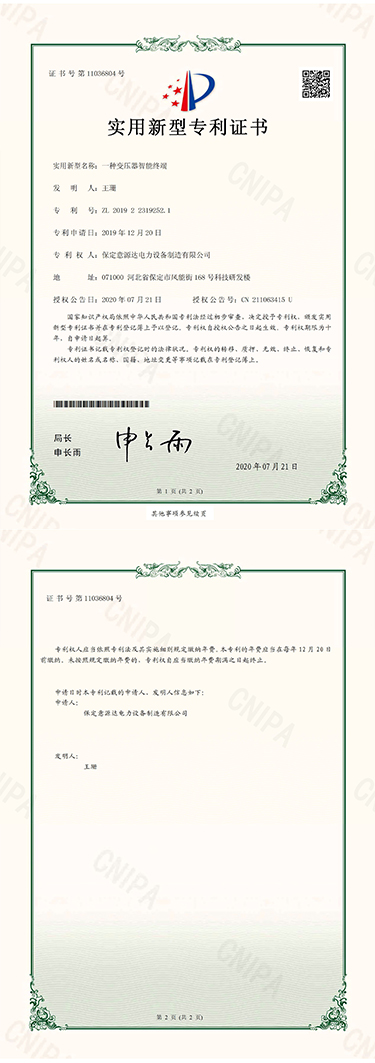 | 一種變壓器智能終端、ZL-2019-2-2319252.1 |