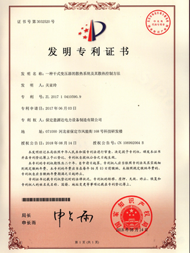 | 一種干式變壓器的散熱系統(tǒng)及其散熱控制方法、ZL2017-1-0410590.9 |