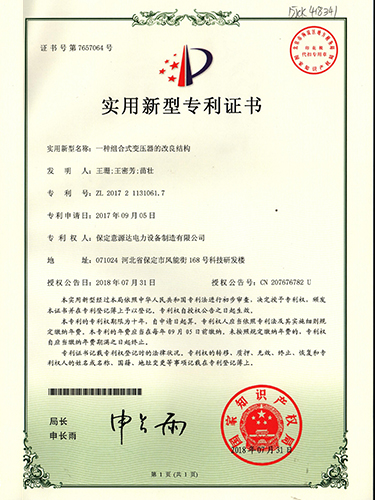 | 一種組合式變壓器的改良結(jié)構(gòu)-ZL-2017-2-1131061.7 |