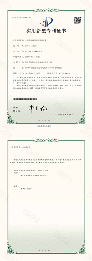 | 一種變壓器線圈用繞制設(shè)備、ZL-2020-2-1940254.9 |